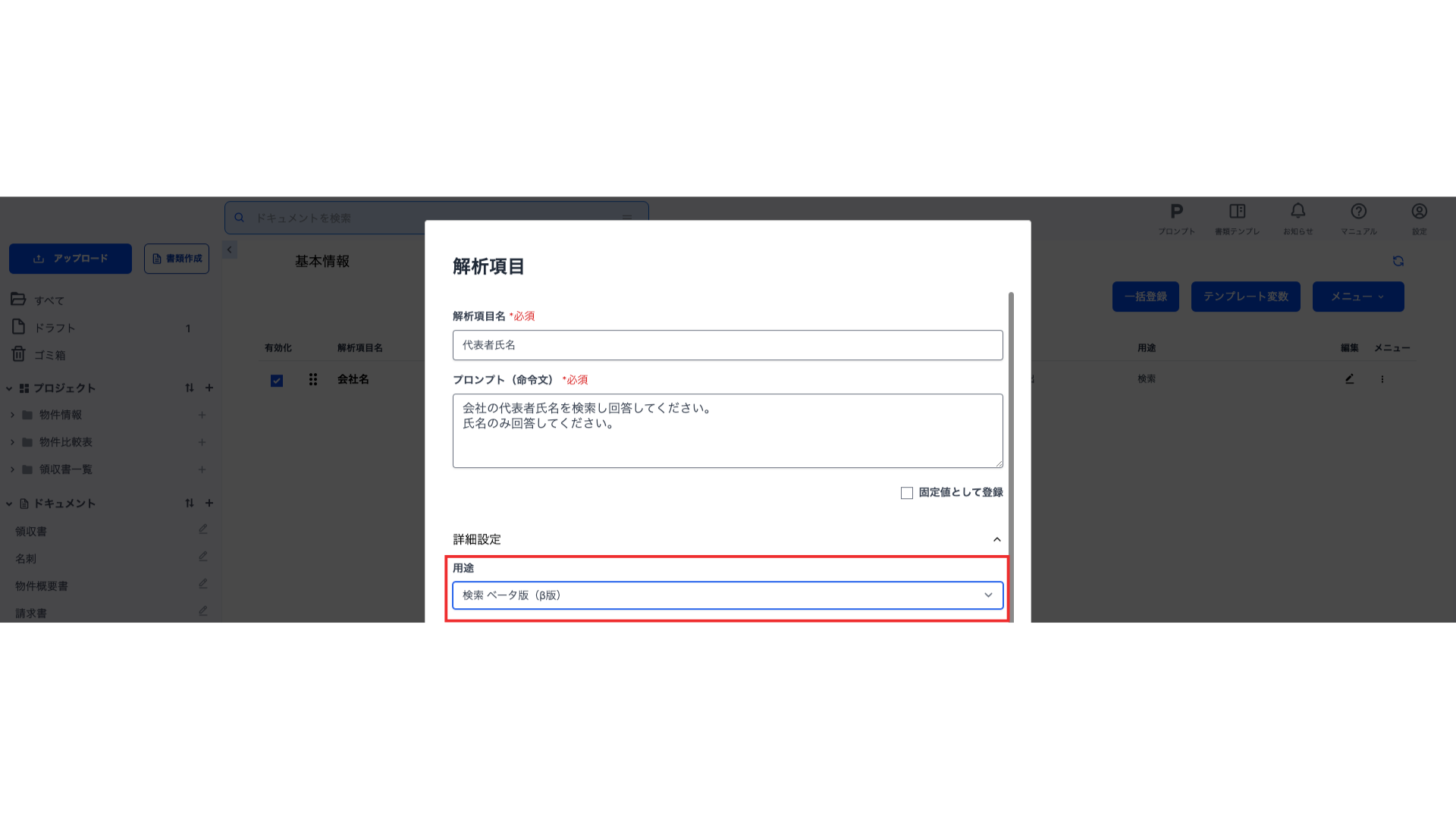 ポイントは「解析対象」が解析項目ごとに異なる点です。詳しい設定方法は、マニュアルのドキュメントタイプの作成 > ドキュメントタイプの編集 > 解析項目 > 解析対象に記載があります。